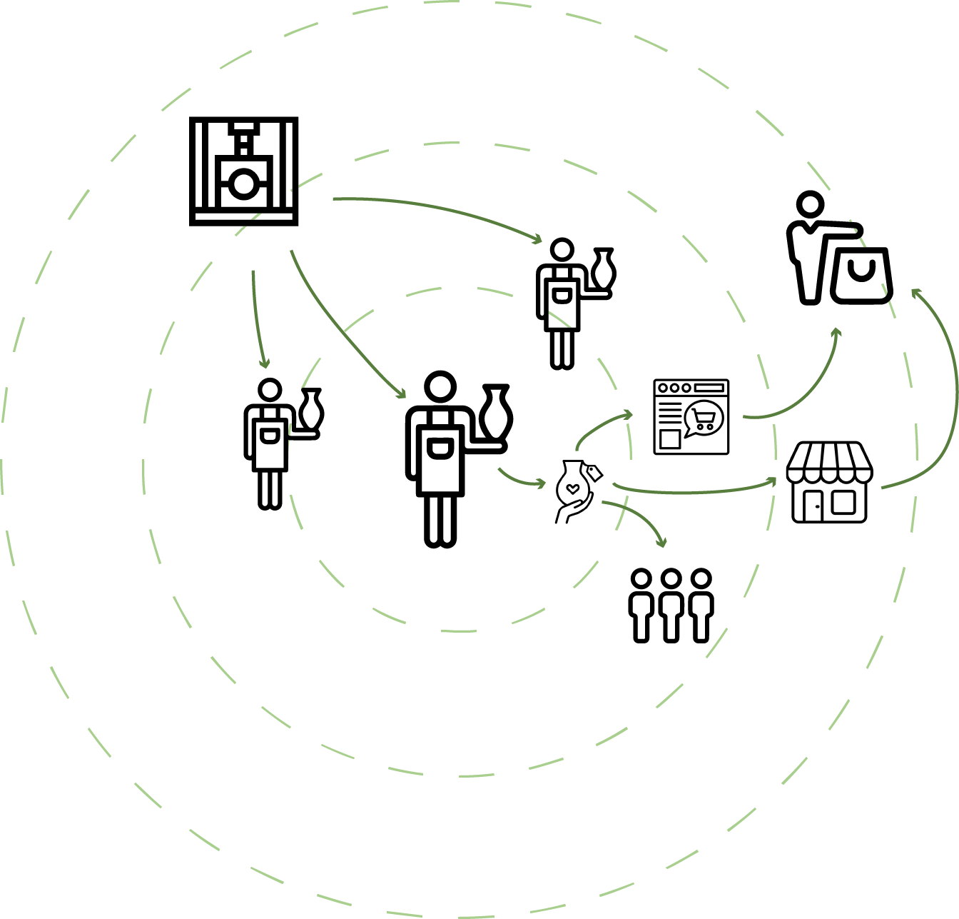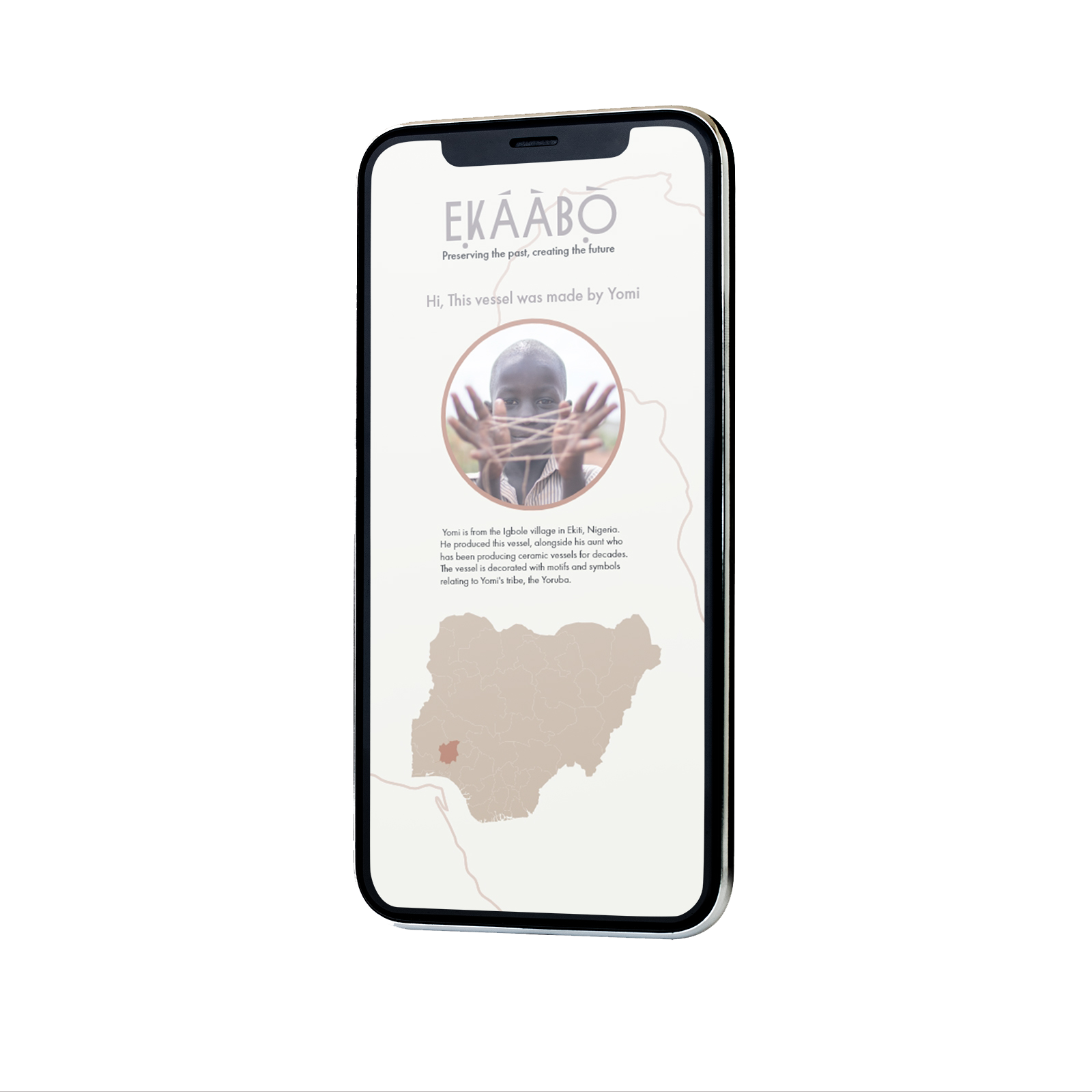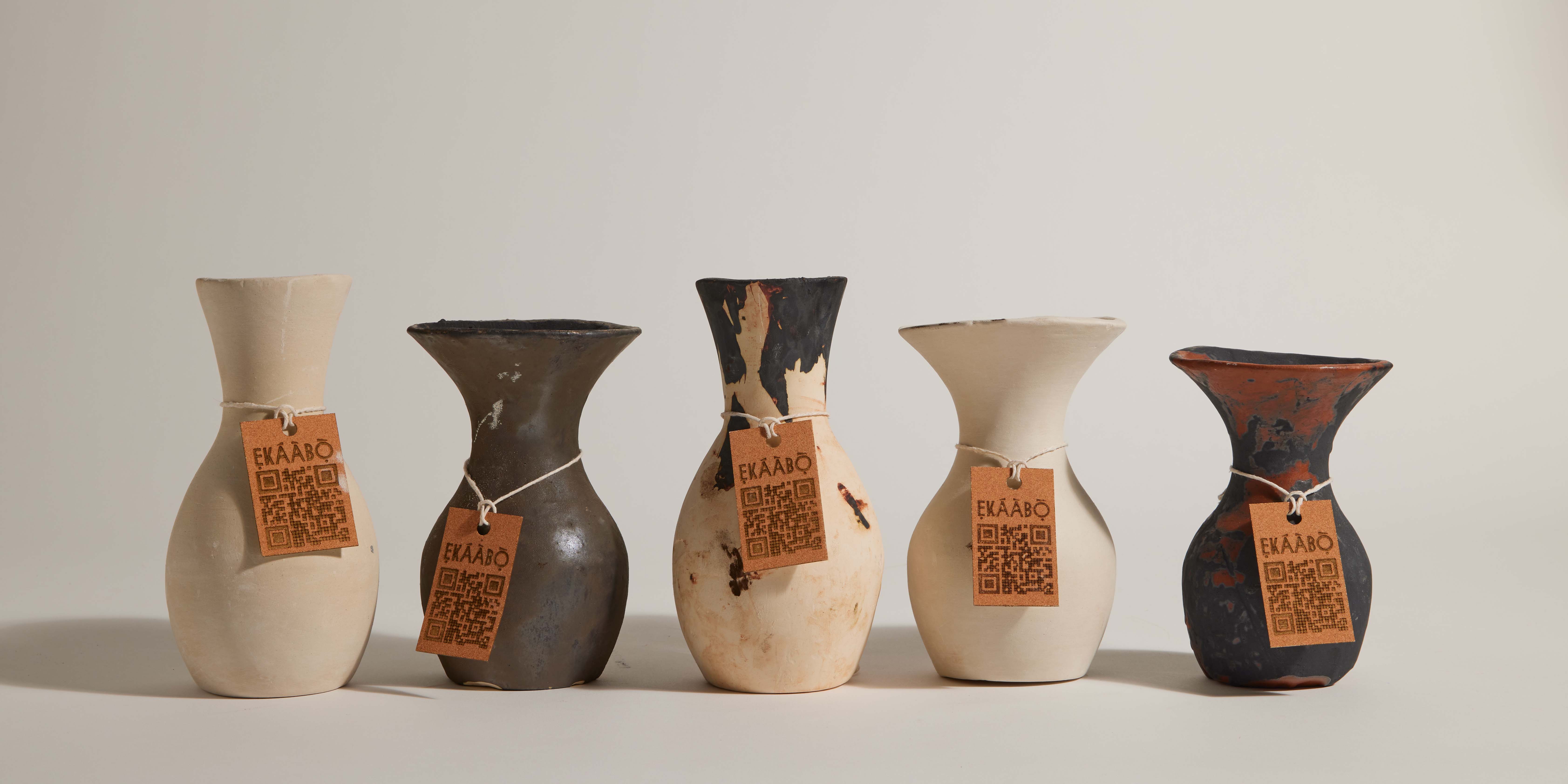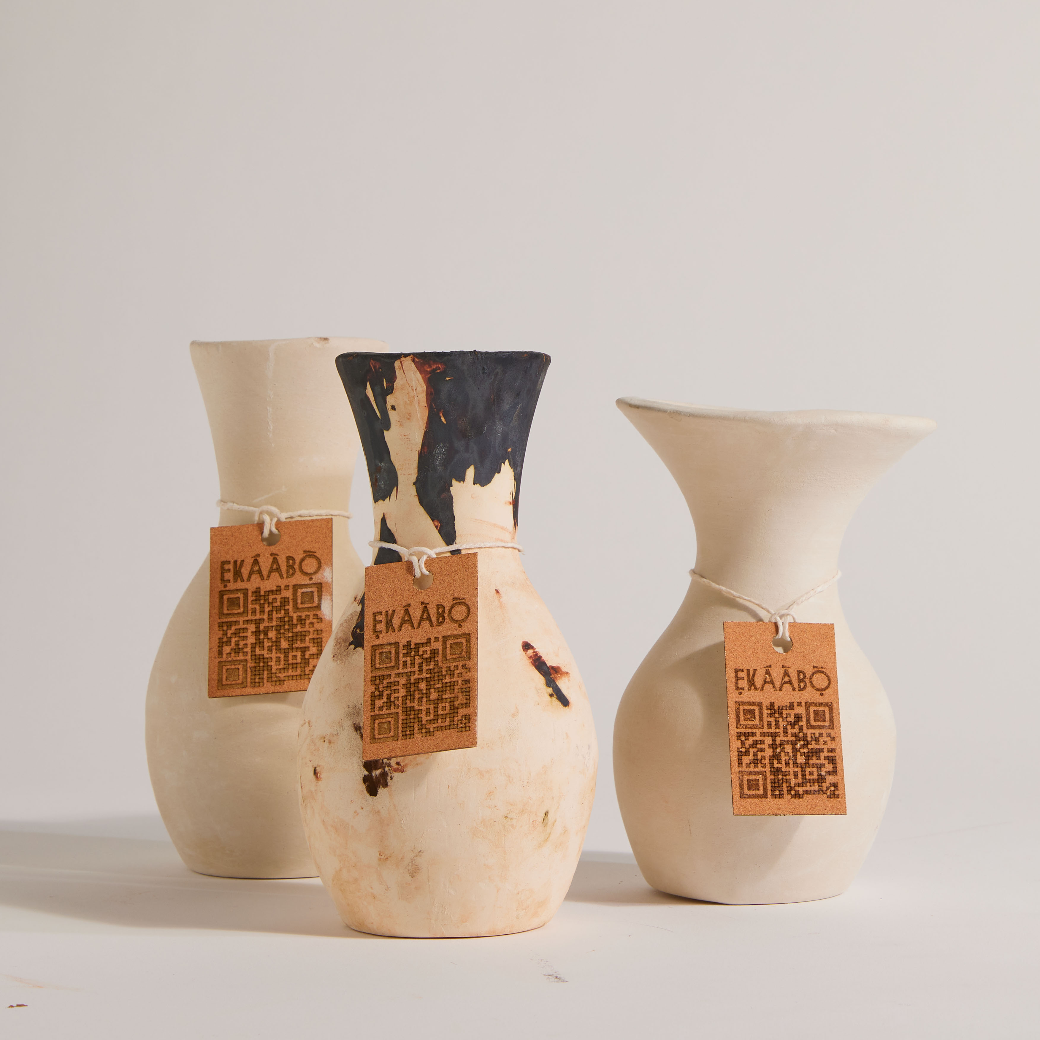 Ẹkáàbọ̀, allows artisan to reflect their unique style and cultural heritage in the product. To provide transparency and traceability in the supply chain, each vessel produced using the Ẹkáàbọ̀ molds is marked with a QR code tag. When scanned, the QR code provides information about the community the vessel came from, the artisan who made the vessel.